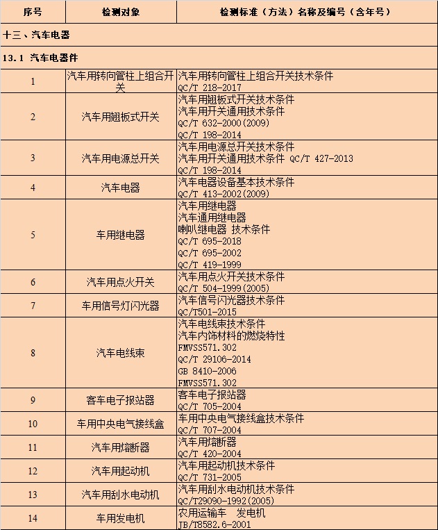 可按照國家標準、行業(yè)標準、企業(yè)標準及國際上一些先進標準(如:ISO、IEC、SAE、DIN、JIS 等)開展汽車電子電氣產品質量監(jiān)督和檢驗工作,為用戶提供交流發(fā)電機、起動機、汽車用各類微型電機及總成、汽車用各類開關、繼電器、分電器、點火線圈、低壓線束、汽車用電線、汽車用閃光燈、喇叭、中央電氣熔斷器、點火控制組件等汽車用電機、電器及電子產品的檢驗服務。