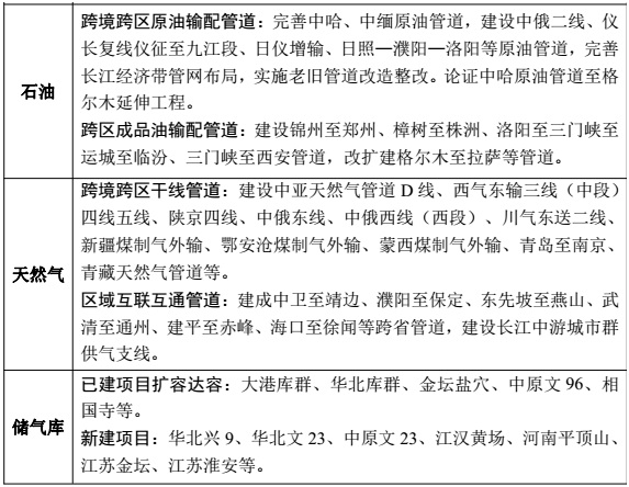 ——油氣管網。 統籌油田開發、 原油進口和煉廠建設布局, 以長江經濟帶和沿海地區為重點, 加強區域管道互聯互通, 完善沿海大型原油接卸碼頭和陸上接轉通道, 加快完善東北、 西北、 西南陸上進口通道, 提高管輸原油供應能力。