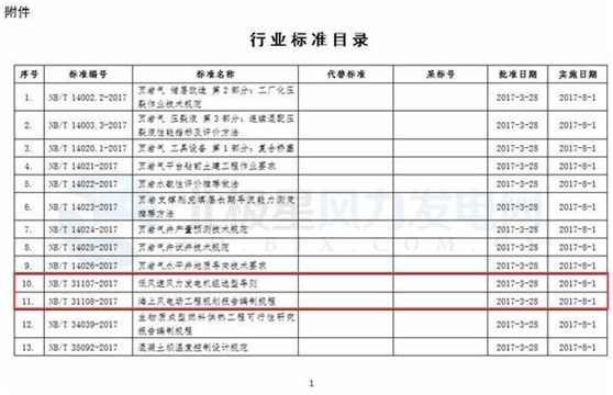北極星風(fēng)力發(fā)電網(wǎng)獲悉,國家能源局近日發(fā)布第6號公告,審查批準(zhǔn)了《工廠化壓裂作業(yè)技術(shù)規(guī)范》、《低風(fēng)速風(fēng)力發(fā)電機(jī)組選型導(dǎo)則》等159項行業(yè)標(biāo)準(zhǔn),其中電力標(biāo)準(zhǔn)(DL)39項,風(fēng)電標(biāo)準(zhǔn)2項:《低風(fēng)速風(fēng)力發(fā)電機(jī)組選型導(dǎo)則》、《海上風(fēng)電場工程規(guī)劃報告編制規(guī)程》。將于2017年8月1日開始實施。以下為公告及行業(yè)標(biāo)準(zhǔn)目錄: