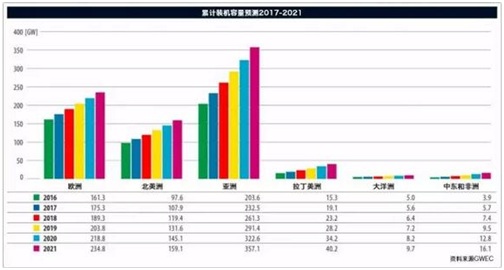 這些增長主要由亞洲國家引領:中國將繼續(xù)在全球市場處于領先地位;印度在過去一年也建立了一個新的裝機記錄,印度風電未來的發(fā)展?jié)摿薮?,因為要完成政府雄心勃勃的風電發(fā)展目標。 與此同時,亞洲還有很多具有顯著發(fā)展?jié)摿Φ男屡d風電市場。