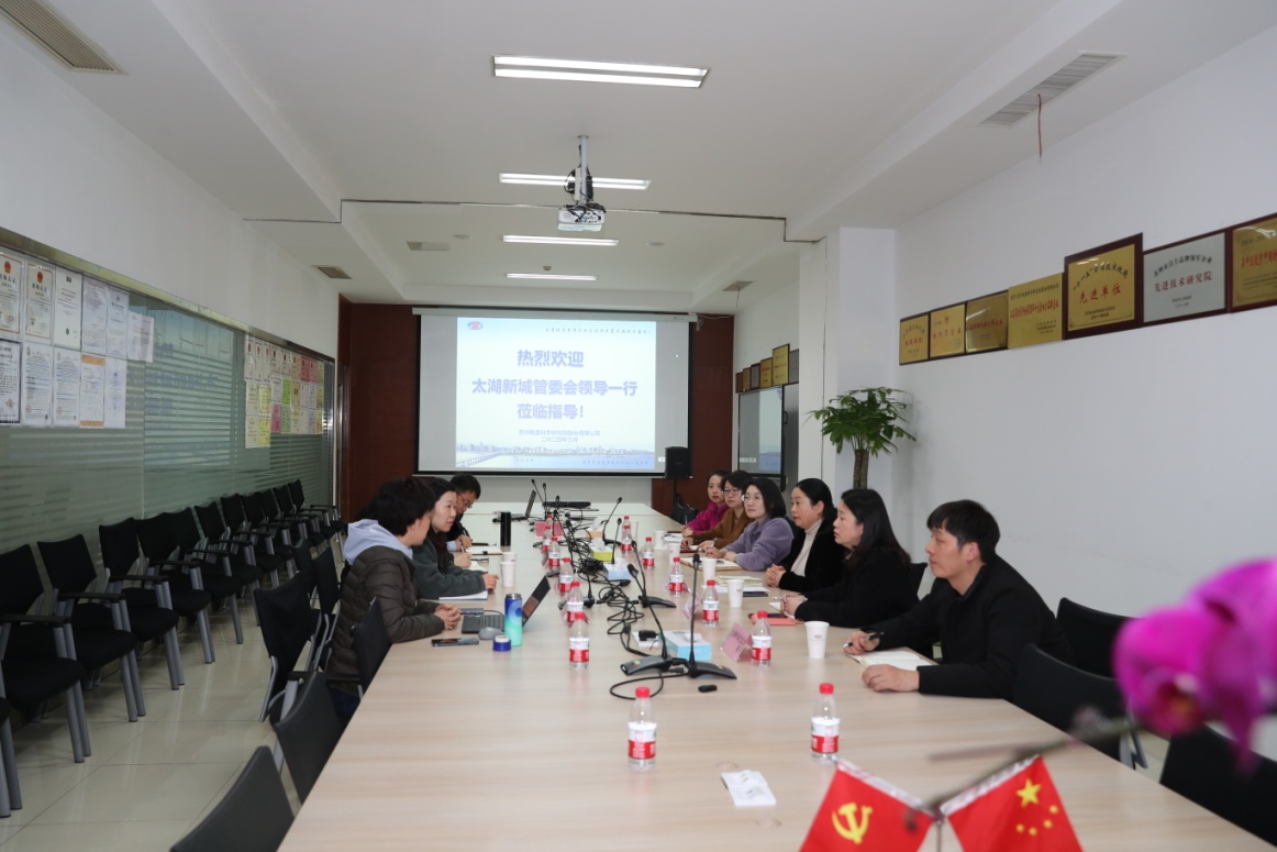 2024319日下午,太湖新城吳中黨工委書記沈文群、太湖新城吳中黨工委副書記陳莉莉等太湖新城管委會領導一行來公司實地調研,太湖新城產發局、太湖新城黨政辦以及太湖街道相關領導陪同參與此次走訪。公司總經理吉熙玥、副總經理陳鳳林以及相關高層領導參與接待。