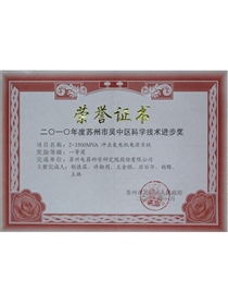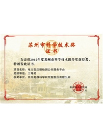 • 2012 Suzhou Civic Third Prize for Progress in Science and Technology (Transformer)