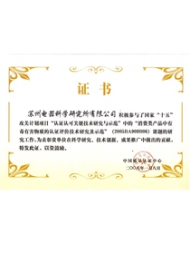 • Outstanding Contribution Award for the Research and Demonstration of the Certification and Evaluation Technology for Toxic and Harmful Substances in Consumer Products under the Research and Demonstrat