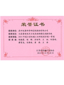 • First Award for Scientific and Technological Progress of the Jiangsu Machinery Industry in 2014