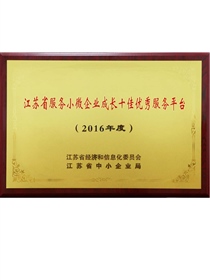 • One of Top 10 Jiangsu Public Service Platforms for Services to the Growth of Small and Micro Enterprises in 2016