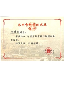 • Suzhou Mayor Award for Scientific and Technological Innovation and Entrepreneurship in 2011