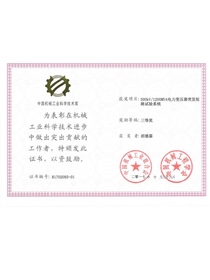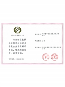 • Third Science and Technology Award of the China Machinery Industry (Certificate)