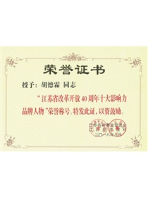 • Top ten influential brand people in Jiangsu Province in the 40th anniversary of reform and opening-up(Certificate)