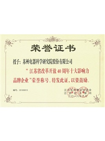 • Top ten influential brand enterprises in Jiangsu Province in the 40th anniversary of reform and opening-up(Certificate)