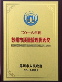 • Excellent Quality Management Award in Suzhou in 2018