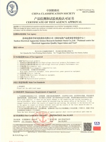 • CHINA CLASSIFICATION SOCIETY CERTIFICATE OF TEST AGENCY APPROVAL-Electrical products (front)