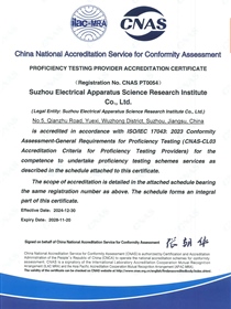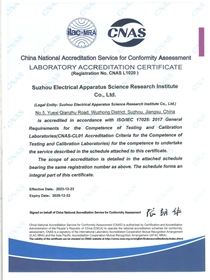 • CNAS accreditation certificate ISO/IEC 17025:2017
